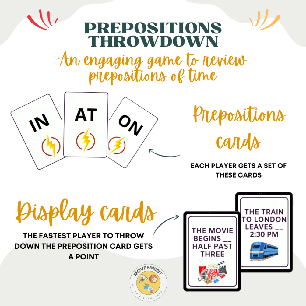 Prepositions throwdown: An engaging game to review prepositions of time